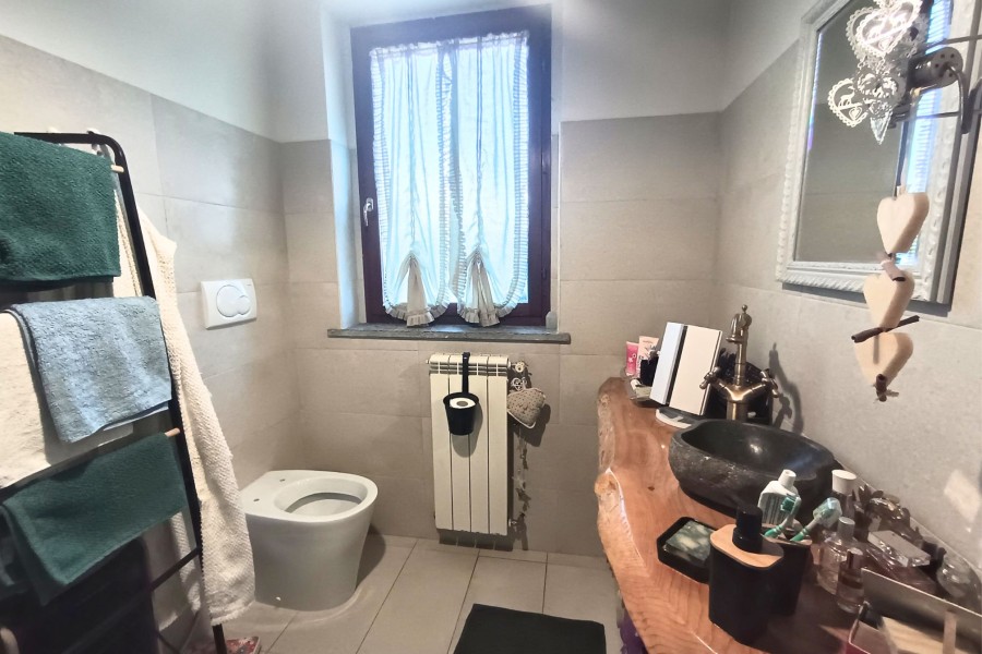 | Composizione | SALONE, CAMERA, CAMERETTA, CUCINA, DOPPI SERVIZI, RIPOSTIGLIO, TERRAZZO (15 MQ COMM.), GIARDINO / CORTE (180 MQ COMM.), BOX AUTO, POSTO AUTO SCOPERTO |